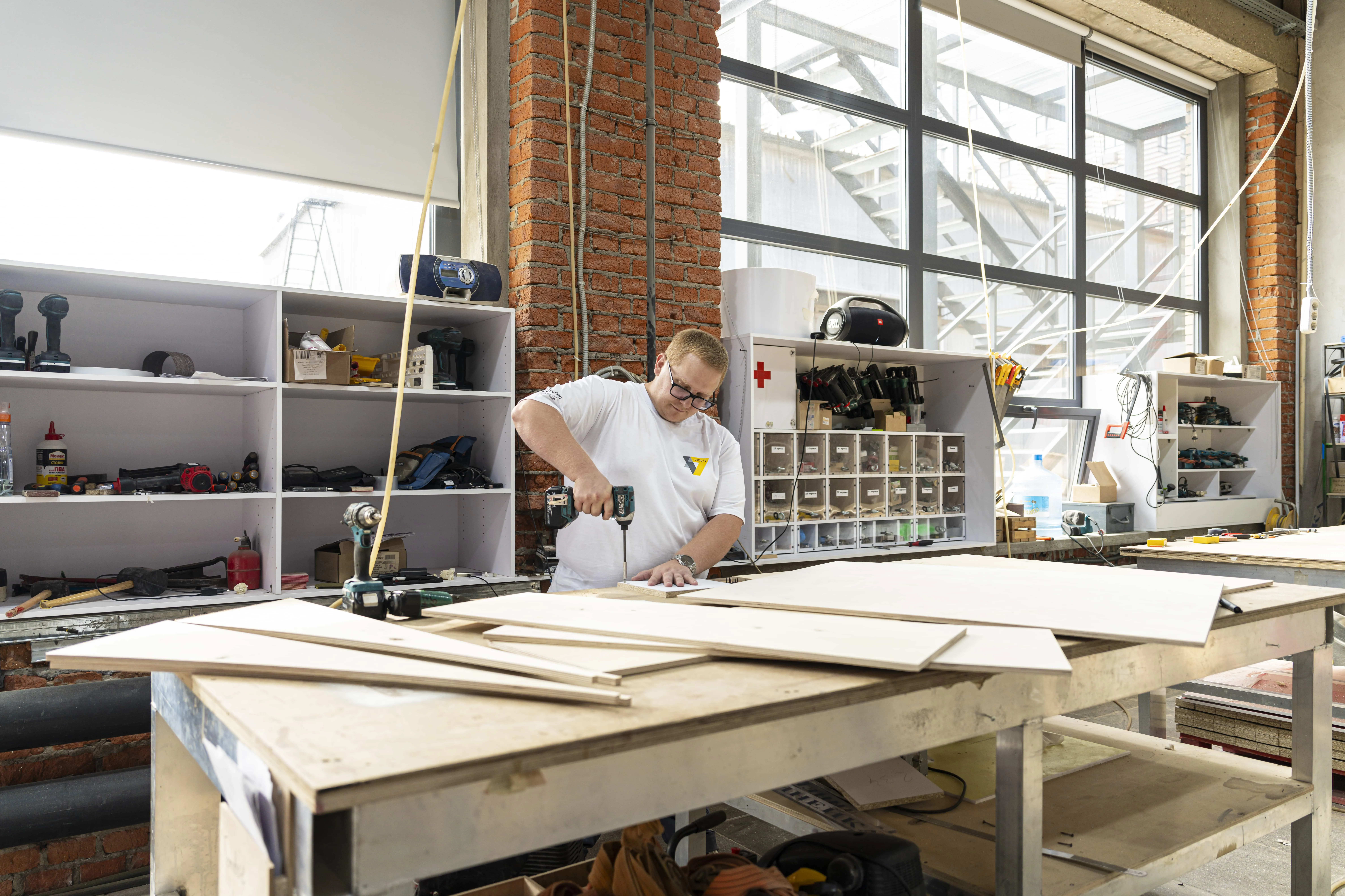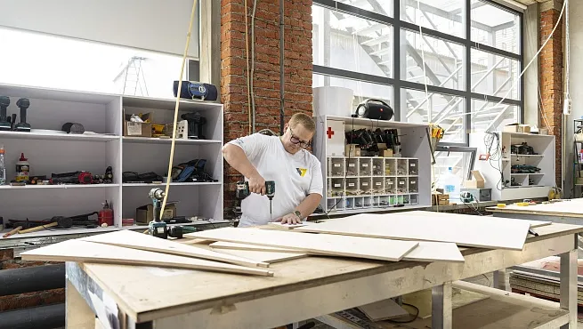 На нашей производственной базе в Москве мы изготавливаем все модули стенда: элементы стен, фризов, сварные конструкции, стойки, витрины, панели и другие элементы. Собственное производство ускоряет сроки и снижает затраты, обеспечивая качество под строгим контролем.