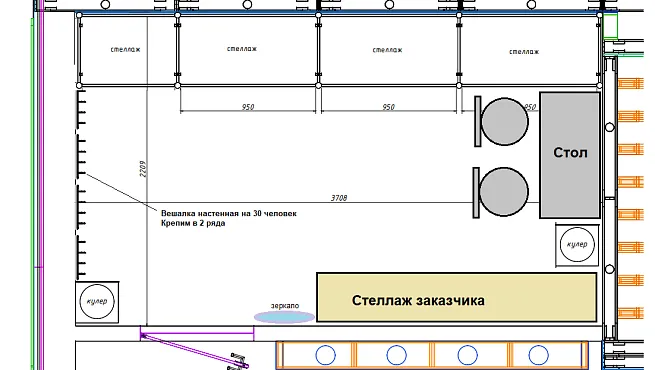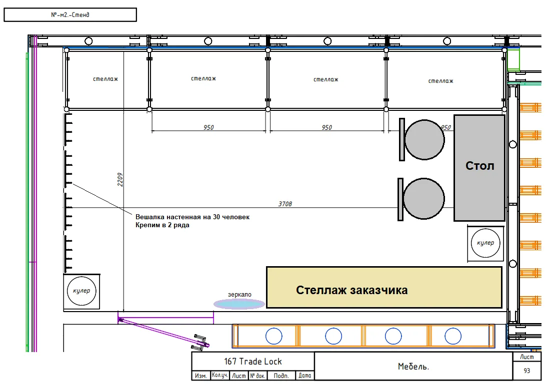 - Место для переодевания и хранения одежды (в прохладное время года), личных вещей стендистов.