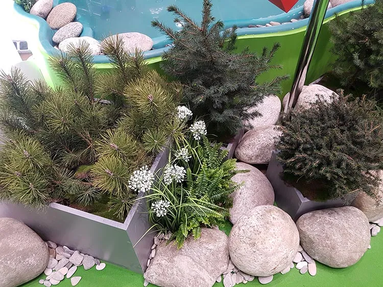 - Искусственные растения. Это практичное решение подходит для длительных мероприятий и мест с ограниченным доступом свежего воздуха и возможности полива.