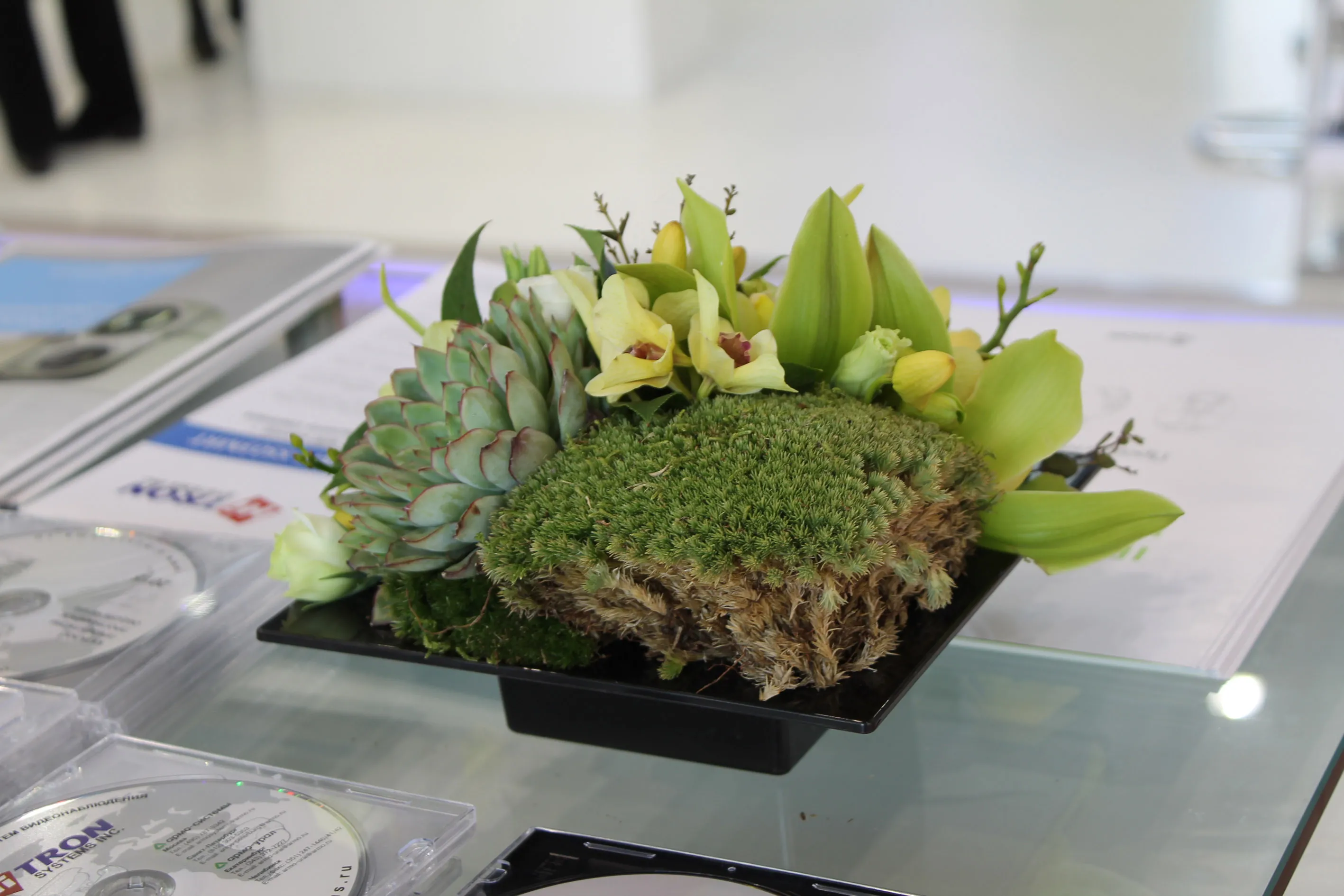 Самые популярные виды современного флористического декора стендов: