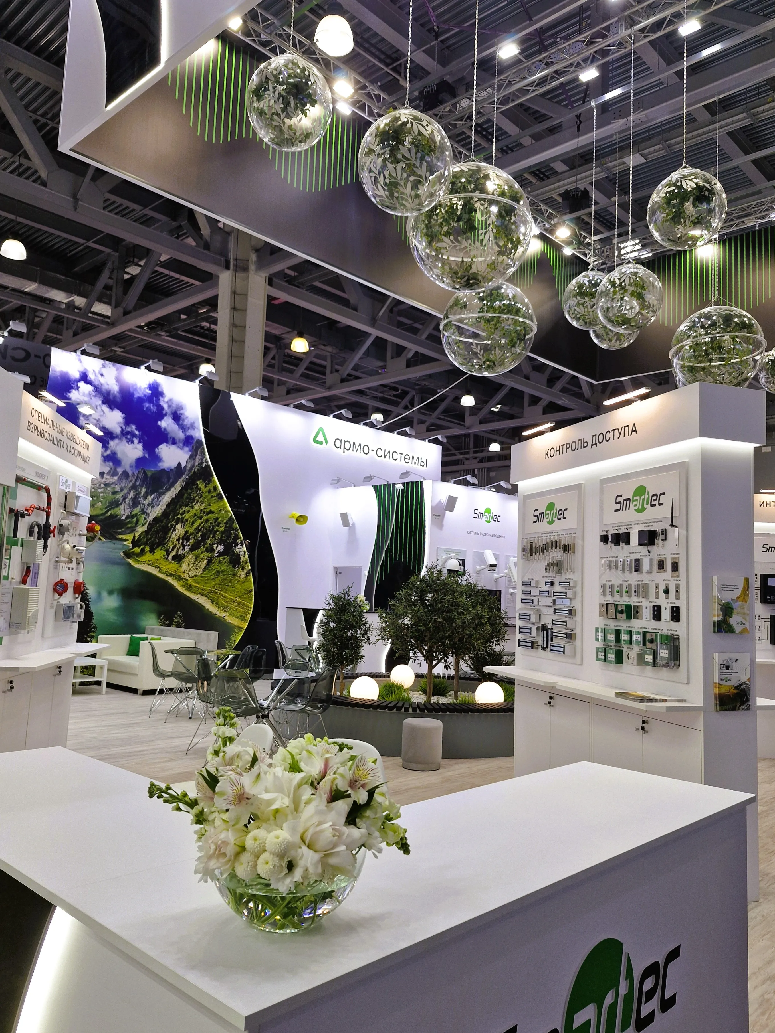 Флористика на выставочных стендах может принимать разнообразные формы, чтобы подчеркнуть характер вашего бренда и создать комфортную атмосферу для посетителей.