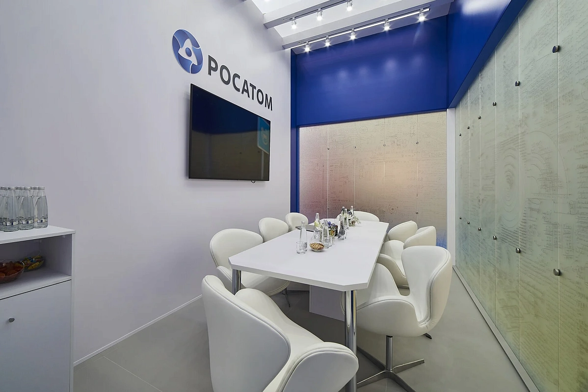 Вызов проекта - масштабный подвес. Тем самым сфокусировано внимание посетителей выставки, визуально увеличена площадь.