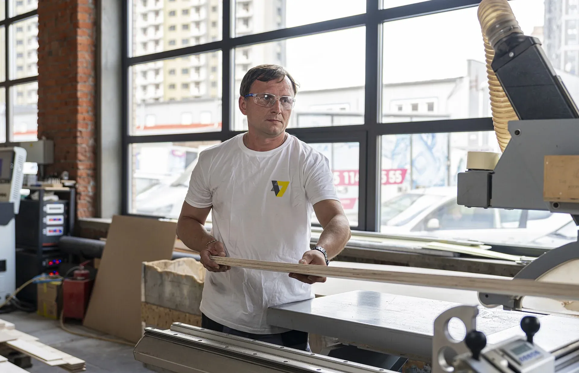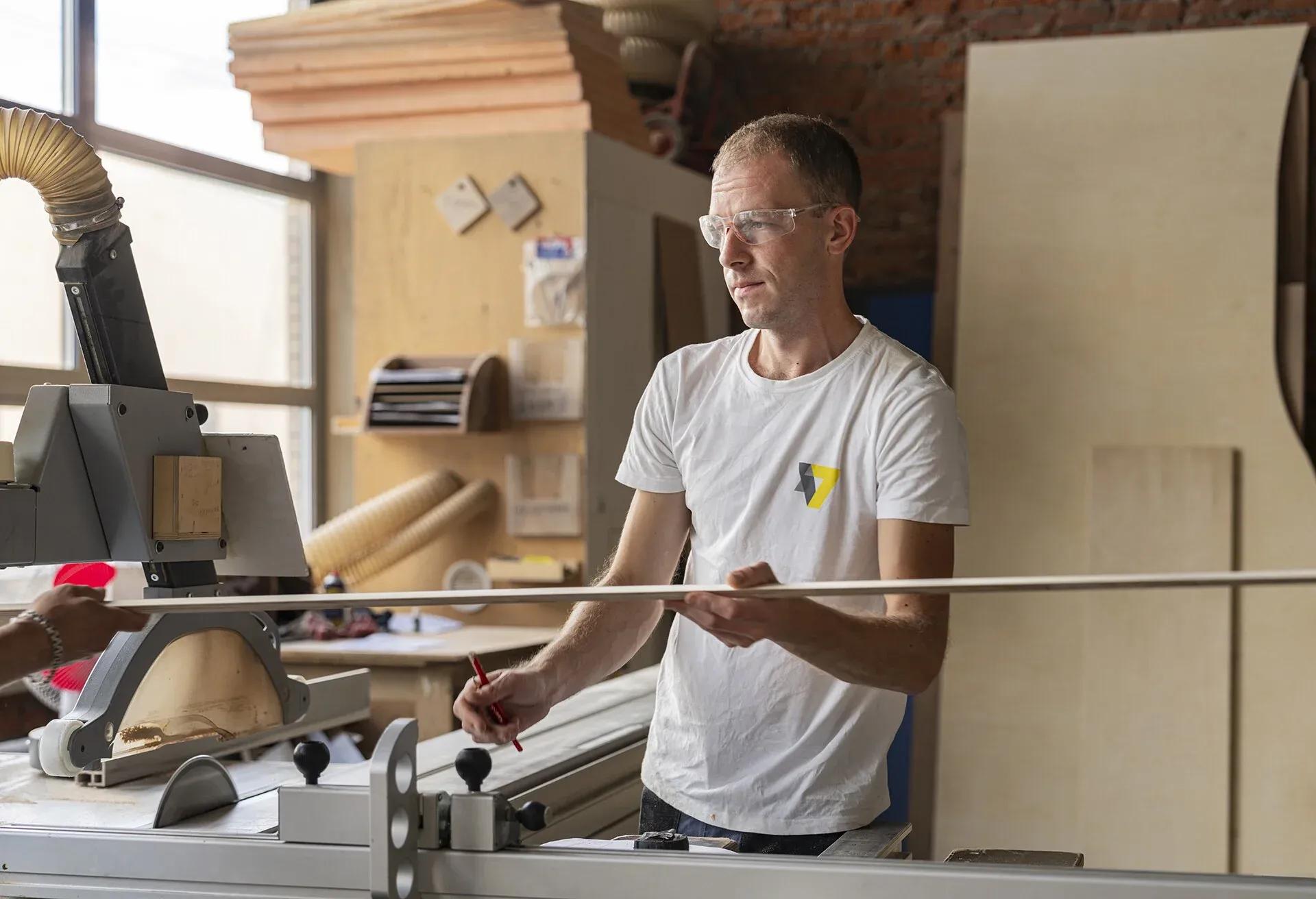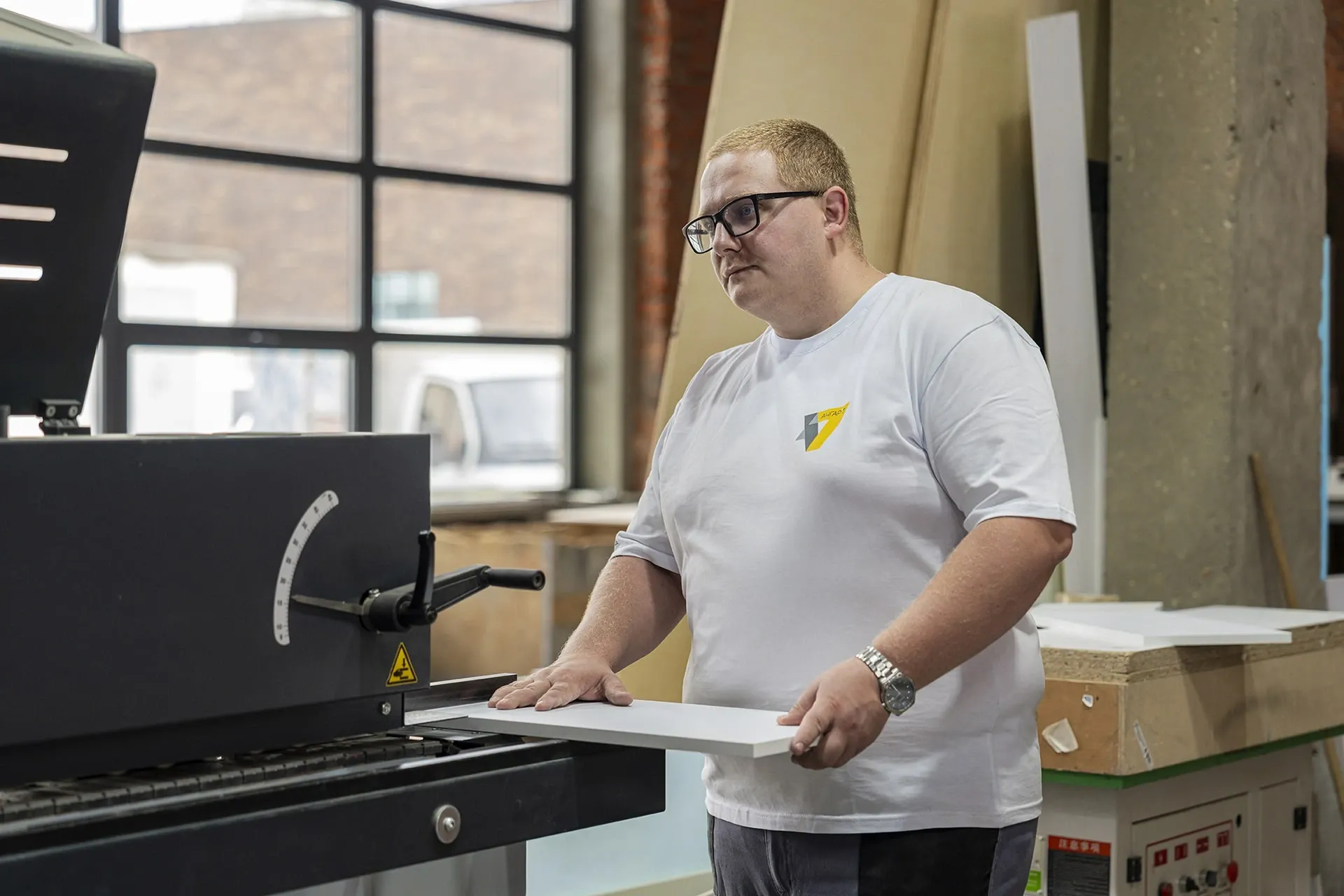 Станок предназначен для раскроя листовых материалов (МДФ, ДСП, ЛДСП и других) по заданным размерам. Позволяет обеспечивать точный раскрой панелей, что важно для последующей сборки и отделки стенда.